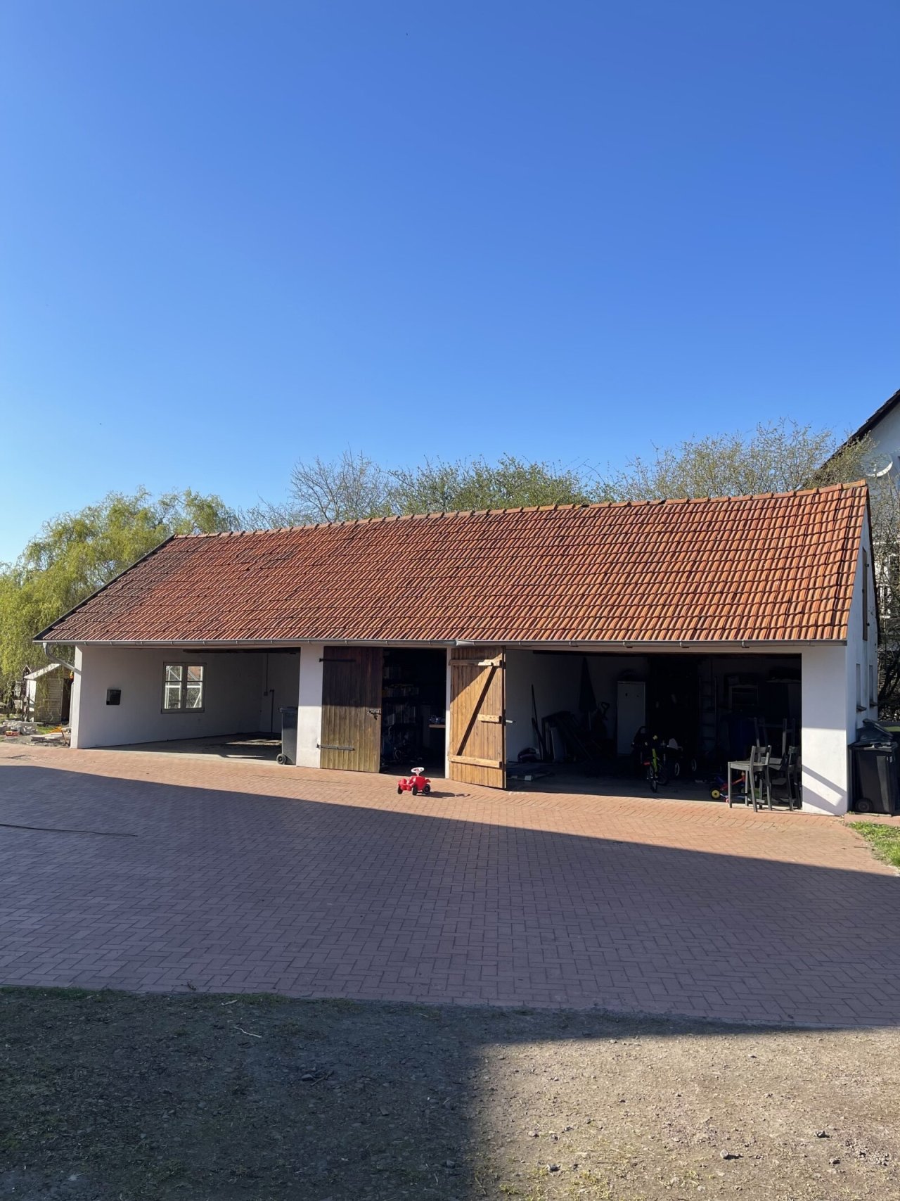 Ein besonderes Highlight des Anwesens ist das 1 ha große Weidegrundstück mit Offenstall und kleinem Reitplatz, ideal für Pferdehalter oder Naturliebhaber. Zudem gehören großzügige Lagerflächen, Stallgebäude und mehrere schön angelegte Gärten zum Objekt.